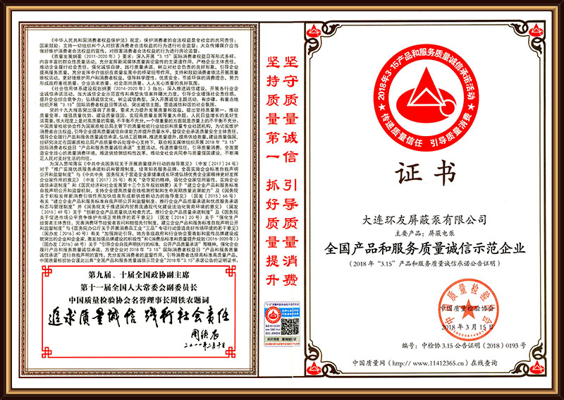 全国产品和服务质量诚信示范企业