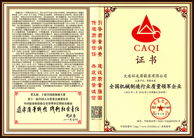 全国机械制造行业质量领军企业
